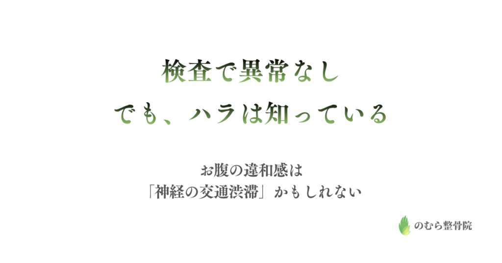 お腹の違和感は胃腸の病気ではなく、腸の神経ネットワークの渋滞かもしれない。隠れた神経のしこりを、強い刺激ではなく“安全”でほどく。 -