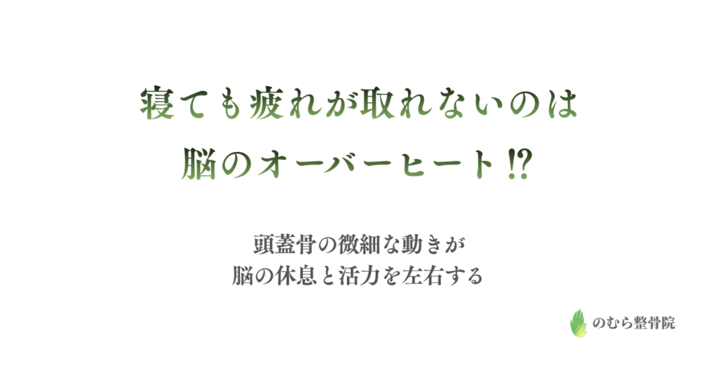回復しない疲れは筋肉より「脳の過熱」かもしれない。頭蓋骨の動きが止まると脳脊髄液が滞り、洗浄と冷却が落ちる。内側の循環から整える視点。 -